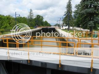 Cada porta tem um operador. O Mike e um desses operadores que teve o vagar e a paciência para me mostrar o processo todo em funcionamento, só faltou o barco. O equipamento e todo da época um autentico museu e funciona com motores elétricos que costumavam ser alimentados por turbinas que existiam ao longo do Canal, mas agora usam corrente da rede que passa por um transformador porque os motores funcionam com corrente direta. Existem duas portas que formão um tanque entre elas. Primeiro o tanque e cheio com água (leva uns 10 minutos) por uns túneis que existem ao lado das paredes do tanque, a porta de trás abre e o barco entra. A porta de trás depois fecha e a água do tanque e desvasiada ao nível da parte mais baixa do canal, a porta da frente abre e o barco continua a sua rota.