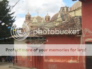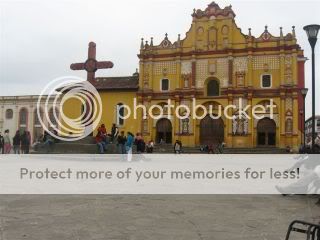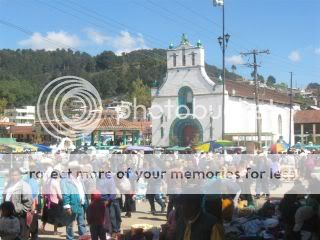 Não foi permitido tirar fotos do interior o que seria a melhor descrição que lhes podia dar; lá dentro iluminado por pouco mais do que centenas de velas e pela pouca luz natural que se escapava pelos buracos do rústico edifício, encontrava-se um chão coberto de caruma verde e livre dos longos cadeirões que se encontram em todas as igrejas católicas, encostados às paredes havia estatuas de santos protectores para quase todas as doenças e males da vida, o altar estava coberto de velas e era evidente que aqui não se celebrava a missa, sentados no chão em frente das estatuas, indivíduos e grupos de famílias indígenas faziam os seus próprios rituais alguns acendiam filas de velas enquanto oravam em língua tzotzil os mais elaborados sacrificam pobres galinhas e espalhavam o sangue por entre as velas, evidente das fortes influencias Maias que noutros tempos costumavam sacrificar prisioneiros nos altares dos seus templos, nisto tudo também havia gente a dormir nos cantos da Igreja. Uma igreja única que vale a pena a visita.