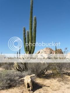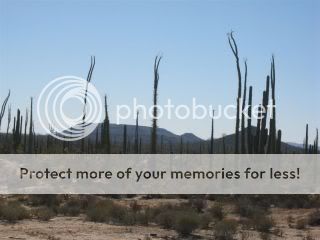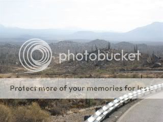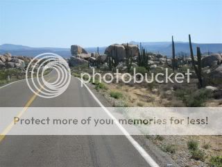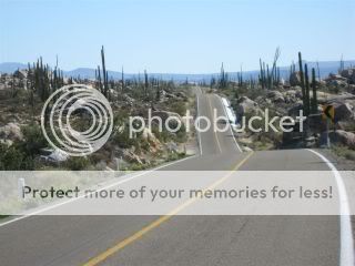 Depois de Rosario e depois de uma pequena série de montanhas as zonas urbanas drasticamente diminuem. Sem ter um mapa de jeito encontrei-me um pouco mal abastecido de comida e água para atravessar o deserto central de Baja Califórnia, tive então que depender dos escassos restaurantes que existem ao longo da estrada e que sobrevivem à custa de esfomeados camionistas e ciclistas mal preparados como eu. Chapala com o seu barulhento gerador para electricidade é a única vila onde foi possível comprar, mercearias com uma escolha muito limitada tive que inventar uns almoços um pouco esquisitos. Mas eu não era o único mal preparado a certa altura vi um senhor de pé a caminho pela borda da estrada trazia consigo um simples saco de roupa, logo que me viu atirou as mãos ao ar e com uma voz de desespero pediu-me se eu tinha comida eu dei-lhe as ultimas bananas que trazia e pedi-lhe desculpa por não ter mais nada para lhe dar, espero que alguém lhe tenha dado boleia para um sitio menos inóspito.