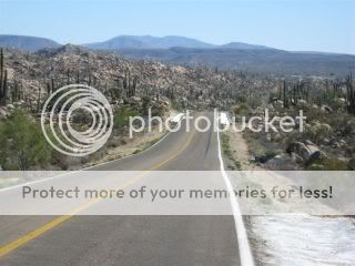 As estradas de Baja Califórnia requerem uma atenção cautelosa são estradas estreitas com intenso tráfego; finalmente estou a dar valor ao espelho que carrego á tantos meses.