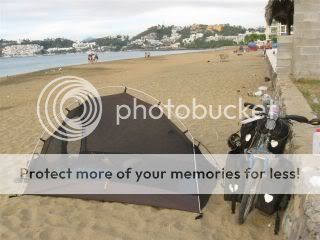 No dia de Ano Novo cheguei a Manzanilo, parei no supermercado para fazer algo de especial para o jantar. Depois fui à procura de um sítio na praia para acampar. Fiz primeiro uns peitos de galinha com arroz e depois já quando se estava a pôr de noite montei a tenda.